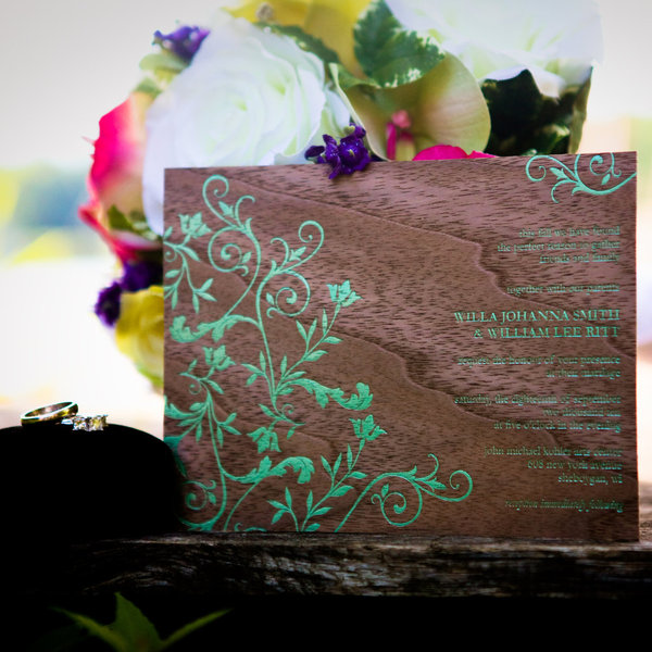 These invitations are beautiful.  And, as the website states, all of the cards and invitations on the site are made from sustainably harvested American trees.  The outcome is a product that is as unique and gorgeous as it is environmentally responsible.